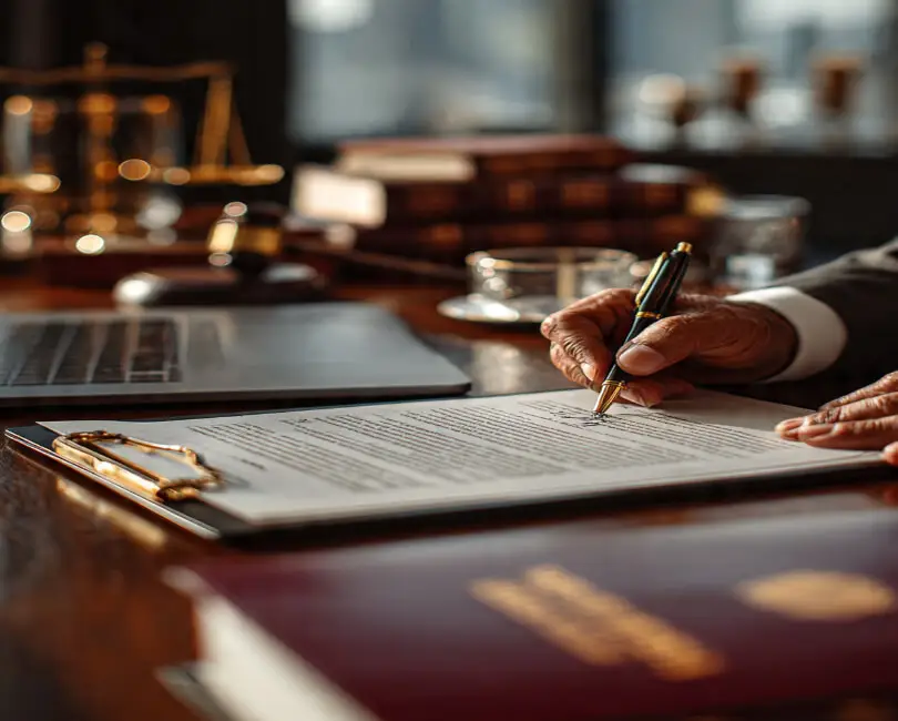 صياغة ومراجعة العقود بدقة لضمان الحقوق والالتزامات القانونية.